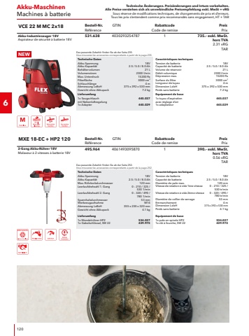 Technische %u00c4nderungen. Preis%u00e4nderungen und Irrtum vorbehalten.Alle Preise verstehen sich als unverbindliche Preisempfehlung exkl. MwSt + vRGSous r%u00e9serve de modifications techniques, de changements de prix et d%u2019erreurs. Tous les prix s%u2018entendent comme prix recommand%u00e9s sans engagement, HT + TAR243GeradschleiferMeuleuses droitesTechnische DatenLeistungsaufnahme710 WLeistungsabgabe420 WSpannung230 VFrequenz50/60 HzLeerlaufdrehzahl2%u2018500 %u2013 6%u2018500 1/minMax. Schleifk%u00f6rperdurchmesser50 mmWerkzeugaufnahmeSpannzangeKabell%u00e4nge4.0 mAbmessung LxBxH340 x 76 x 84 mmGewicht2.1 kgLieferumfang1x Spannzange228.6561x Anhalteklaue, SW 14254.9171x Einmaulschl%u00fcssel, SW 19104.914Caract%u00e9ristiques techniquesPuissance absorb%u00e9e2600 WPuissance utile1800 WTension230 VFr%u00e9quence50/60 HzVitesse de rotation %u00e0 vide2%u2018500 %u2013 6%u2018500 tr/minDiam%u00e8tre max. de la meule50 mmEmmanchementPince de serrageLongueur de c%u00e2ble4.0 mDimension LxlxH340 x 76 x 84 mmPoids2.1 kgEquipement de base1x pince de serrage228.6561x griffe d%u2018arr%u00eat, SW 14254.9171x cl%u00e9 %u00e0 fourche, SW 19104.914H 1105 VEBestell-Nr.R%u00e9f%u00e9renceGTINRabattcodeCode de remisePreisPrix710 Watt GeradschleiferMeuleuse droite 710 Watt269.95640302930772871625.%u2013 exkl. MwSt. hors TVA 0.56 vRGTARTechnische DatenLeistungsaufnahme800 WSpannung230 VFrequenz50/60 HzLeerlaufdrehzahl10%u2018600 %u2013 32%u2018000 1/minMax. Schleifk%u00f6rperdurchmesser50 mmSpannhalsdurchmesser43 mmGreifumfang147 mmWerkzeugaufnahmeSpannzangeKabell%u00e4nge4.0 mAbmessung LxBxH380 x 83 x 83 mmGewicht2.1 kgLieferumfang1x Spannzange530.0141x Gabelschl%u00fcssel, SW 17Caract%u00e9ristiques techniquesPuissance absorb%u00e9e2600 WTension230 VFr%u00e9quence50/60 HzVitesse de rotation %u00e0 vide10%u2018600 %u2013 32%u2018000 tr/minDiam%u00e8tre max. de la meule50 mmDiam%u00e8tre de collier de serrage43 mmCirconf%u00e9rence de pr%u00e9hension147 mmEmmanchementPince de serrageLongueur de c%u00e2ble4.0 mDimension LxlxH380 x 83 x 83 mmPoids2.1 kgEquipement de base1x pince de serrage530.0141x cl%u00e9 %u00e0 fourche simple, SW 17DGE 8-32Bestell-Nr.R%u00e9f%u00e9renceGTINRabattcodeCode de remisePreisPrix800 Watt Geradschleifer mitvariablem, hohem DrehzahlbereichMeuleuse droite 800 Watt %u00e0 haut vitesse522.27940302932403771440.%u2013 exkl. MwSt. hors TVA 0.56 vRGTARSpannzange f%u00fcr / Pince de serrage pour H 1105 / H 1127 VE SpannzangePince de serrageRabattcodeCode de remise2mit Spannmutteravec ecrou de serrageBezeichnungD%u00e9signationDurchmesserDiam%u00e8treBestell-Nr.R%u00e9f%u00e9renceVEUEPreis PrixSPZ-H D33 mm229.741155.%u2013SPZ-H D1/41/4\229.776156.%u2013SPZ-H D66 mm228.656140.%u2013SPZ-H D88 mm229.768155.%u2013Spannzange f%u00fcr / Pince de serrage pour DGESpannzangePince de serrageRabattcodeCode de remise2mit Spannmutter. Passend f%u00fcr Geradschleifer DGE 8-32 und DGE 25 18.0-EC.avec ecrou de serrage. Convient aux meuleuses droites DGE 8-32 et DGE 25 18.0-EC.BezeichnungD%u00e9signationDurchmesserDiam%u00e8treBestell-Nr.R%u00e9f%u00e9renceVEUEPreis PrixSPZ-DGE 066 mm530.014132.%u2013SPZ-DGE 088 mm530.015132.%u2013SPZ-DGE 1/41/4\530.016132.%u2013