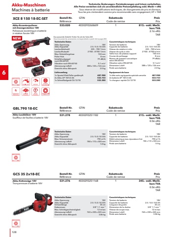 Technische %u00c4nderungen. Preis%u00e4nderungen und Irrtum vorbehalten.Alle Preise verstehen sich als unverbindliche Preisempfehlung exkl. MwSt + vRGSous r%u00e9serve de modifications techniques, de changements de prix et d%u2019erreurs. Tous les prix s%u2018entendent comme prix recommand%u00e9s sans engagement, HT + TAR324Zubeh%u00f6r Metalloberfl%u00e4chen-BearbeitungAccessoires Traitement de surface m%u00e9talliqueZubeh%u00f6r / Accessoires TRINOXFLEX / BSE / BRE / BBE 14-3Schleifvorsatz SatinierenAdaptateur de pon%u00e7age pour satinageRabattcodeCode de remise2Schleifvorsatz mit integriertem Handgriff zum Satinieren f%u00fcr die TRINOXFLEX. Werkzeuglos %u00fcber das Schnellwechselsystem montierbar.Adaptateur de pon%u00e7age avec poign%u00e9e int%u00e9gr%u00e9e pour la satineuse TRINOXFLEX. Montage possible sans outil via le syst%u00e8me de changement rapide.BezeichnungD%u00e9signationBestell-Nr.R%u00e9f%u00e9renceVEUEPreis PrixBS 100433.4621346.%u2013Schleifvorsatz RohrbandAdaptateur de pon%u00e7age %u00e0 bande pour tubesRabattcodeCode de remise2Schleifvorsatz zum Rohrbandschleifen f%u00fcr die TRINOXFLEX.Werkzeuglos %u00fcber das Schnellwechselystem montierbar. Vorsatz variabel verstellbar.Adaptateur de pon%u00e7age %u00e0 des fins de pon%u00e7age %u00e0 bande pour tubes pour TRINOXFLEX. Montage possible sans outil via le syst%u00e8me de changement rapide. Adaptateur %u00e0 r%u00e9glage variable.BezeichnungD%u00e9signationBestell-Nr.R%u00e9f%u00e9renceVEUEPreis PrixBR 125433.47011%u2018050.%u2013Schleifvorsatz B%u00fcrstenAdaptateur de pon%u00e7age brossageRabattcodeCode de remise2Schleifvorsatz zum B%u00fcrsten f%u00fcr die TRINOXFLEX. Mit abnehmbarer Schutzhaube und Absauganschluss %u00d8 32 mm f%u00fcr staubarmes Arbeiten. Inklusive F%u00fchrungsanschlag und vibrationsged%u00e4mpftem ergonomischen Handgriff. Werkzeugloser Schleifwerkzeugwechsel %u00fcber patentiertes Schnellwechselsystem.Adaptateur de pon%u00e7age pour la brosseuse TRINOXFLEX.Avec carter de protection amovible et raccord d%u2019aspiration de 32 mm de diam%u00e8tre pour un travail peu poussi%u00e9reux. Avec but%u00e9e de guidage et poign%u00e9e ergonomique antivibratoire. Changement d%u2019outil de pon%u00e7age sans outil gr%u00e2ce au syst%u00e8me brevet%u00e9 de changement rapide.BezeichnungD%u00e9signationBestell-Nr.R%u00e9f%u00e9renceVEUEPreis PrixBB 110461.5551429.%u2013AbsaughaubeJupe d%u2019aspirationRabattcodeCode de remise2Absaughaube f%u00fcr die BSE 14-3 100 mit Absauganschluss (Clip D32) f%u00fcr Walzen und B%u00fcrsten mit max. %u00d8 110 mm.Capot d%u2019aspiration pour BSE 14-3 100 avec raccord d%u2019aspiration (clip D32) pour rouleaux et brosses avec un diam%u00e8tre max. de 110 mm.BezeichnungD%u00e9signationBestell-Nr.R%u00e9f%u00e9renceVEUEPreis PrixBG D 110461.5471127.%u2013B%u00fcrstenleisteInsertsRabattcodeCode de remise2B%u00fcrstenleiste f%u00fcr Absaughaube 461.547.Barrette %u00e0 brosse pour capot d%u2018aspiration 461.547.BezeichnungD%u00e9signationBestell-Nr.R%u00e9f%u00e9renceVEUEPreis PrixBL-S BG461.563122.%u2013GummiluftwalzeCylindre %u00e0 air en caoutchoucRabattcodeCode de remise2Zum gef%u00fchlvollen Schleifen von Konturen.Pour bien poncer les contours.BezeichnungD%u00e9signationBestell-Nr.R%u00e9f%u00e9renceVEUEPreis PrixAS 100x100433.8961111.%u2013