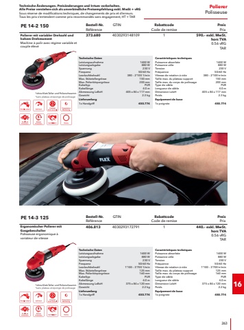 Technische %u00c4nderungen. Preis%u00e4nderungen und Irrtum vorbehalten.Alle Preise verstehen sich als unverbindliche Preisempfehlung exkl. MwSt + vRGSous r%u00e9serve de modifications techniques, de changements de prix et d%u2019erreurs. Tous les prix s%u2018entendent comme prix recommand%u00e9s sans engagement, HT + TAR314Metalloberfl%u00e4chen-BearbeitungTraitement de surface m%u00e9talliqueTechnische DatenLeistungsaufnahme1400 WLeistungsabgabe880 WSpannung230 VFrequenz50/60 HzLeerlaufdrehzahl1%u2018000 %u2013 3%u2018500 1/minB%u00fcrsten-/Walzendurchmesser Max.120 mmB%u00fcrsten-/Walzenbreite Max.100 mmWerkzeugaufnahme19 mmKabell%u00e4nge4.0 mAbmessung LxBxH335 x 190 x 210 mmGewicht2.9 kgLieferumfang1x Schleifvorsatz B%u00fcrsten461.5551x Koffereinlage451.9911x Transportkoffer L-BOXX%u00ae414.093Caract%u00e9ristiques techniquesPuissance absorb%u00e9e1400 WPuissance utile880 WTension230 VFr%u00e9quence50/60 HzVitesse de rotation %u00e0 vide1%u2018000 %u2013 3%u2018500 tr/minDiam%u00e8tre de brosse120 mmLargeur de brosse100 mmEmmanchement19 mmLongueur de c%u00e2ble4.0 mDimension LxlxH335 x 190 x 210 mmPoids2.9 kgEquipement de base1x adaptateur de pon%u00e7age brossage461.5551x insert pour coffret451.9911x coffret de transport L-BOXX%u00ae414.093BBE 14-3 110Bestell-Nr.R%u00e9f%u00e9renceGTINRabattcodeCode de remisePreisPrixB%u00fcrstmaschine TRINOXFLEXBrosseuse TRINOXFLEX471.09740302932105161800.%u2013 exkl. MwSt. hors TVA 0.56 vRGTARTechnische DatenLeistungsaufnahme1400 WLeistungsabgabe880 WSpannung230 VFrequenz50/60 HzLeerlaufdrehzahl1%u2018000 %u2013 3%u2018500 1/minB%u00fcrsten-/Walzendurchmesser Max.120 mmB%u00fcrsten-/Walzenbreite Max.100 mmWerkzeugaufnahme19 mmKabell%u00e4nge4.0 mAbmessung LxBxH335 x 190 x 210 mmGewicht2.9 kgLieferumfang1x Schleifvorsatz B%u00fcrsten461.5551x Nylonb%u00fcrste465.1351x Litzendrahtb%u00fcrste Stahl465.1781x Koffereinlage451.9911x Transportkoffer L-BOXX%u00ae414.093Caract%u00e9ristiques techniquesPuissance absorb%u00e9e1400 WPuissance utile880 WTension230 VFr%u00e9quence50/60 HzVitesse de rotation %u00e0 vide1%u2018000 %u2013 3%u2018500 tr/minDiam%u00e8tre de brosse120 mmLargeur de brosse100 mmEmmanchement19 mmLongueur de c%u00e2ble4.0 mDimension LxlxH335 x 190 x 210 mmPoids2.9 kgEquipement de base1x adaptateur de pon%u00e7age brossage461.5551x brosse nylon465.1351x brosse acier %u00e0 fils torsad%u00e9s465.1781x insert pour coffret451.9911x coffret de transport L-BOXX%u00ae414.093BBE 14-3 110 SetBestell-Nr.R%u00e9f%u00e9renceGTINRabattcodeCode de remisePreisPrixB%u00fcrstmaschine TRINOXFLEXBrosseuse TRINOXFLEX461.504403029320562811%u2018000.%u2013 exkl. MwSt. hors TVA 0.56 vRGTAR