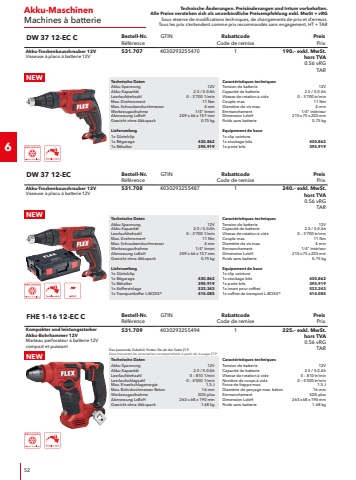 Technische %u00c4nderungen. Preis%u00e4nderungen und Irrtum vorbehalten.Alle Preise verstehen sich als unverbindliche Preisempfehlung exkl. MwSt + vRGSous r%u00e9serve de modifications techniques, de changements de prix et d%u2019erreurs. Tous les prix s%u2018entendent comme prix recommand%u00e9s sans engagement, HT + TAR41Schweizer SpezialistenSp%u00e9cialistes suissesTechnische DatenLeistungsaufnahme1600 WLeerlaufdrehzahl2%u2018000 1/minKabell%u00e4nge4.0 mGewicht9.30 kgLieferumfang1x Gewindereduktion51.1911x R%u00fchrstab inkl. Schraubenset51.2171x R%u00fchrpropeller INOX %u00d8 150 mm51.2131x Seitlicher Handgriff M14193.3561x Gabelschl%u00fcssel, SW 22109.398Caract%u00e9ristiques techniquesPuissance absorb%u00e9e1600 WVitesse de rotation %u00e0 vide2%u2018000 tr/minLongueur de c%u00e2ble4.0 mPoids9.30 kgEquipement de base1x r%u00e9duction de filetage51.1911x b%u00e2ton d%u2018agitation avec kit de vis51.2171x h%u00e9lice m%u00e9langeuse INOX %u00d8 150 mm51.2131x poign%u00e9e lat%u00e9rale M14193.3561x cl%u00e9 %u00e0 fourche, SW 22109.398R 2602Bestell-Nr.R%u00e9f%u00e9renceGTINRabattcodeCode de remisePreisPrix1600 Watt R%u00fchrmaschineM%u00e9langeur 1600 Watt50.196403029301248611%u2018040.%u2013 exkl. MwSt. hors TVA 2.31 vRGTARTechnische DatenLeistungsaufnahme1200 WLeerlaufdrehzahl4%u2018000 1/minWerkzeugdurchmesser100 mmAbsaugstutzendurchmesser32 mmKabell%u00e4nge4.0 mGewicht4.40 kgLieferumfang1x Stockvorsatz inkl.3 Stockstationen51.0131x B%u00fcgelgriff236.9341x Adapter445.1421x Transportkoffer L-BOXX%u00ae414.093Caract%u00e9ristiques techniquesPuissance absorb%u00e9e1200 WVitesse de rotation %u00e0 vide4%u2018000 tr/minDiam%u00e8tre outil max.100 mmRaccord de l%u2018aspiration de poussi%u00e8re32 mmLongueur de c%u00e2ble4.0 mPoids4.40 kgEquipement de base1x canne de rechange avec3 stations de canne51.0131x poign%u00e9e %u00e0 %u00e9trier236.9341x adaptateur445.1421x coffret de transport L-BOXX%u00ae414.093ST 1503Bestell-Nr.R%u00e9f%u00e9renceGTINRabattcodeCode de remisePreisPrix1200 Watt StockmaschineBouchardeuse 1200 Watt50.186403029300156511%u2018400.%u2013 exkl. MwSt. hors TVA 0.56 vRGTARTechnische DatenLeistungsaufnahme1800 WLeerlaufdrehzahl4%u2018000 1/minWerkzeugdurchmesser150 mmAbsaugstutzendurchmesser32 mmKabell%u00e4nge4.0 mGewicht6.95 kgLieferumfang1x Stockvorsatz inkl.4 Stockstationen51.0111x B%u00fcgelhandgriff1x Adapter461.6361x Transportkoffer444.391Caract%u00e9ristiques techniquesPuissance absorb%u00e9e1800 WVitesse de rotation %u00e0 vide4%u2018000 tr/minDiam%u00e8tre outil max.150 mmRaccord de l%u2018aspiration de poussi%u00e8re32 mmLongueur de c%u00e2ble4.0 mPoids6.95 kgEquipement de base1x canne de rechange avec4 stations de canne51.0111x poign%u00e9e %u00e0 %u00e9trier1x adaptateur461.6361x coffret de transport444.391ST 804Bestell-Nr.R%u00e9f%u00e9renceGTINRabattcodeCode de remisePreisPrix1800 Watt StockmaschineBouchardeuse 1800 Watt50.192403029301003111%u2018835.%u2013 exkl. MwSt. hors TVA 2.31 vRGTAR