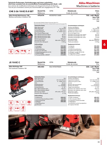 Technische %u00c4nderungen. Preis%u00e4nderungen und Irrtum vorbehalten.Alle Preise verstehen sich als unverbindliche Preisempfehlung exkl. MwSt + vRGSous r%u00e9serve de modifications techniques, de changements de prix et d%u2019erreurs. Tous les prix s%u2018entendent comme prix recommand%u00e9s sans engagement, HT + TAR374Zubeh%u00f6r Metalloberfl%u00e4chen-BearbeitungAccessoires Traitement de surface m%u00e9talliqueSchleif-Vlies gefaltetPapier %u00e9meri pli%u00e9RabattcodeCode de remise2Elastische Vlieswalze mit mehrfach gefaltetem Schleif-Vlies f%u00fcr einen fast ansatzfreien Schliff auf Edelstahl, Kupfer, Alu, Messing usw.Roue de polissage %u00e9lastique avec papier %u00e9meri %u00e0 pliage multiple pour un poli presque sans piq%u00fbre sur acier inox, cuivre, aluminium, laiton, etc.BezeichnungD%u00e9signationDurchmesserDiam%u00e8treBreiteLargeurKornGrainBestell-Nr.R%u00e9f%u00e9renceVEUEPreis PrixSW-VG A100 100x100100 mm100 mmA 100347.272154.%u2013SW-VG A180 100x100100 mm100 mmA 180347.280154.%u2013SW-VG A280 100x100100 mm100 mmA 280347.299154.%u2013Nylonb%u00fcrsteBrosse nylonRabattcodeCode de remise2Schleifkorndurchsetzte Kunststoffb%u00fcrste, dadurch kein l%u00f6sen des Schleifkorns vom Tr%u00e4germaterial. Zum B%u00fcrsten von Holzoberfl%u00e4chen, Entfernen von Farbr%u00fcckst%u00e4nden und Ausb%u00fcrsten von Jahresringen in Weichh%u00f6lzern. Mit 4-Nut Walzenkern, passend f%u00fcr alle Ger%u00e4te mit 19 mm Keilnutspindel (kompatibel f%u00fcr LP 1503 VR).Brosse en plastique garnie de grains abrasifs, les grains abrasifs ne se d%u00e9tachent donc pas du support. Pour brosser les surfaces en bois, %u00e9liminer les r%u00e9sidus de peinture et enlever les cernes des bois tendres %u00e0 la brosse. Avec noyau de rouleau %u00e0 4 rainures, convient pour tous les appareils avec broche cannel%u00e9e de 19 mm (compatible pour LP 1503 VR).BezeichnungD%u00e9signationDurchmesserDiam%u00e8treKornGrainBestell-Nr.R%u00e9f%u00e9renceVEUEPreis PrixBW-NY D110/85 P46110 mmP 46465.1351115.%u2013BW-NY D110/85 P120110 mmP 120465.1431115.%u2013Superfinishing-H%u00fclseManchon abrasif pour polirRabattcodeCode de remise2Zum Hochglanzpolieren ohne Poliermittel in zwei Stufen.Pour polir sans produit de polissage en deux %u00e9tapes.BezeichnungD%u00e9signationDurchmesserDiam%u00e8treBreiteLargeurKornGrainBestell-Nr.R%u00e9f%u00e9renceVEUEPreis Prix90x100 SU-S60090 mm100 mmS 600318.175124.%u201390x100 SU-S150090 mm100 mmS 1500318.183124.%u2013100x100 SU-S600100 mm100 mmS 600436.429126.%u2013100x100 SU-S1500100 mm100 mmS 1500436.437126.%u2013Schleifh%u00fclse ZIRCOFLEXManchon abrasif ZIRCOFLEXRabattcodeCode de remise9Schleifh%u00fclse mit hochwertigem, selbstsch%u00e4rfendem Zirkonkorund f%u00fcr verl%u00e4ngerte Standzeit. Hohe Abtragsleistung beim Grob- und Zwischenschliff von Stahl- und Edelstahloberfl%u00e4chen.Manchon %u00e0 poncer avec corindon de zirconium de haute qualit%u00e9 %u00e0 auto-aff%u00fbtage pour une plus longue dur%u00e9e de vie. Capacit%u00e9 abrasive %u00e9lev%u00e9e lors du pon%u00e7age grossier et interm%u00e9diaire des surfaces en acier et acier inoxydable.BezeichnungD%u00e9signationDurchmesserDiam%u00e8treBreiteLargeurKornGrainBestell-Nr.R%u00e9f%u00e9renceVEUEPreis Prix90x100 ZI-P60 VE590 mm100 mmP 60256.285536.%u201390x100 ZI-P100 VE590 mm100 mmP 100256.286536.%u201390x100 ZI-P180 VE590 mm100 mmP 180256.287536.%u2013100x100 ZI-P60 VE5100 mm100 mmP 60434.507532.%u2013100x100 ZI-P80 VE5100 mm100 mmP 80434.515532.%u2013100x100 ZI-P120 VE5100 mm100 mmP 120434.523532.%u2013Schleifh%u00fclse CORULEXManchon abrasif CORUFLEXRabattcodeCode de remise9Hochflexible Schleifh%u00fclse mit verg%u00fctetem Korundkorn und schleifaktiven Wirkstoffen f%u00fcr die Edelstahbearbeitung. Besonders geeignet f%u00fcr den Feinschliff.Manchon %u00e0 poncer ultra souple avec grain corindon tremp%u00e9 et agents abrasifs actifs pour le traitement de l%u2019acier inoxydable. Particuli%u00e8rement adapt%u00e9 au pon%u00e7age de finition.BezeichnungD%u00e9signationDurchmesserDiam%u00e8treBreiteLargeurKornGrainBestell-Nr.R%u00e9f%u00e9renceVEUEPreis Prix100x100 CR-P180 VE5100 mm100 mmP 180434.574528.%u2013100x100 CR-P240 VE5100 mm100 mmP 240434.582528.%u2013