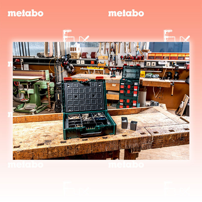 Das Ladenlokal bleibt vom 25. Dezember 2025 bis am 04. Januar 2026 geschlossen. Bestellungen und Lieferungen von Neugeräten werden trotz Ferienabwesenheit in gewohnter Fux-Manier entgegengenommen und ausgeliefert. Zu "Metabox Organizer " von Metabo Metabo Metabox 118 Organizer Bestell- und Artikelnummer: 626897000 Intelligentes Transport- und Aufbewahrungssystem für Kleinteile und Zubehör Maximale Übersicht dank der zwölf frei positionierbaren Sortimo Einsatzboxen in vier verschiedenen Größen Sichere Steckverbindung jeder Einsatzbox im Boden des Organizers, so können auch nur einzelne Boxen verwendet werden Mit zwölf Etiketten für eine individuelle Kennzeichnung des Inhaltes Extrem robust und bruchsicher durch Material und Formgebung für maximale Belastbarkeit Optimaler Schutz von Zubehör und Kleinteilen gegen Schmutz und Feuchtigkeit (IP43) Schnelles und einfaches Stapeln und Koppeln der Boxen in allen Systembreiten Eine Box im Stapel kann einfach geöffnet werden ohne diese zu entkoppeln Cleveres Zubehör: Rollbrett für maximale Mobilität und Adapterplatte zur Sicherung der Boxen im Fahrzeug Set bestehend aus: 4x Einsatzboxen 1x1 H63 (52 mm x 52 mm x 63 mm); 5x Einsatzboxen 1x2 H63 (104 mm x 52 mm x 63 mm); 2x Einsatzboxen 2x2 H63 (104 mm x 104 mm x 63 mm); 1x Einsatzbox 2x3 H63 (157 mm x 104 mm x 63 mm) Technische Daten Abmessungen 396 x 296 x 118 mm Koffervolumen 8.4 l Max. Traglast Deckel 125 kg Gewicht 1.3 kg Material ABS Listenpreis CHF 71.00 Fuxpreis CHF 60.00 inkl. 8.1% MwSt, inkl vRG Versand CHF 15.00 Kein Grauimport! Produkt bestellen 1 Stück 2 Stück 3 Stück 4 Stück 5 Stück 6 Stück 7 Stück 8 Stück 9 Stück 10 Stück 11 Stück 12 Stück 13 Stück 14 Stück 15 Stück 16 Stück 17 Stück 18 Stück 19 Stück 20 Stück 21 Stück 22 Stück 23 Stück 24 Stück 25 Stück 26 Stück 27 Stück 28 Stück 29 Stück 30 Stück 31 Stück 32 Stück 33 Stück 34 Stück 35 Stück 36 Stück 37 Stück 38 Stück 39 Stück 40 Stück 41 Stück 42 Stück 43 Stück 44 Stück 45 Stück 46 Stück 47 Stück 48 Stück 49 Stück 50 Stück Alle Angaben ohne Gewähr und solange Vorrat reicht!Wiederverkäufer werden?Lehrlingsrabatt? Produkt als PDF AKTION 15%