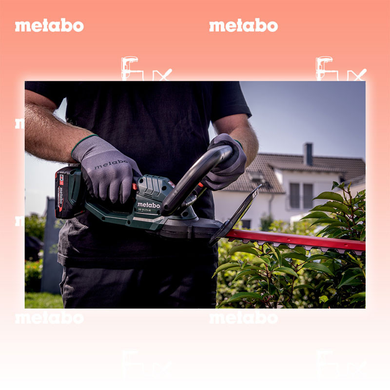 Das Ladenlokal bleibt vom 25. Dezember 2025 bis am 04. Januar 2026 geschlossen. Bestellungen und Lieferungen von Neugeräten werden trotz Ferienabwesenheit in gewohnter Fux-Manier entgegengenommen und ausgeliefert. Zu "Akku Heckenscheren" von Metabo FULL Service: 36 Monate zum Nulltarif für Sie! Weitere Infos zum FULL Service Dieses Produkt ist CAS kompatibel! Weitere Infos zu CAS Metabo HS 18 LTX 55 Akku - Heckenschere Bestell- und Artikelnummer: 601718500 Extrem leichte und leise Akku-Heckenschere zum kräfteschonenden Trimmen von Hecken und Sträuchern Saubere Schnitte durch lasergeschnittene, diamantgeschliffene Messer Hohe Schnittleistung durch spezielle Tropfenform der Messerzähne: kein Entweichen der Zweige während des Schnitts Komfortable Zweihand-Bedienung durch langen Schalterdrücker und innenliegenden Bügelgriffschalter Hoher Anwenderschutz durch zusätzlichen Sicherheitsschalter und Messer-Schnellstopp (in 0,08 Sekunden) Angenehmes Arbeiten durch perfekte Balance, vibrationsarmen Lauf und Softgrip-Handgriff Anstoßschutz schützt Anwender und Getriebe vor Rückschlägen bei Arbeiten in Wand- und Bodennähe Platzsparende Aufbewahrung an der Wand durch praktische Aufhängeöse im Messerschutzköcher Umweltfreundlich und leise durch Akkubetrieb, dadurch auch in lärmsensiblen Bereichen einsetzbar Kombinierbar mit allen 18V-Akkupacks und Ladegeräten der CAS Marken: www.cordless-alliance-system.com Technische Daten Akkuspannung 18 V Messerlänge 55 cm Schnittlänge 53 cm Max. Schnittstärke 19 mm Schnittzahl bei Leerlauf 2600 /min Gewicht ohne Akkupack 2.2 kg Gewicht mit Akkupack 2.6 kg Standard-Ausrüstung 2 Li-Power Akkupacks (18 V/2,0 Ah) Ladegerät SC 30 Messerschutzköcher Zubehör Verbrauchsmaterial Listenpreis CHF 259.00 Fuxpreis CHF 220.00 inkl. 8.1% MwSt, inkl vRG Frankolieferung Kein Grauimport! Produkt bestellen 1 Stück 2 Stück 3 Stück 4 Stück 5 Stück 6 Stück 7 Stück 8 Stück 9 Stück 10 Stück Alle Angaben ohne Gewähr und solange Vorrat reicht!Wiederverkäufer werden?Lehrlingsrabatt? Produkt als PDFProduktevideoVideo LiHD 1Video LiHD 2 AKTION 15%