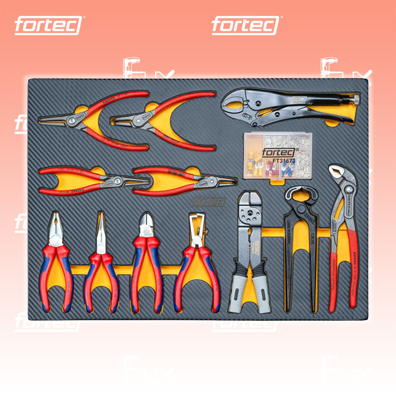 • Bestückt mit 706 Werkzeugen, PB-Swiss Tools Schraubendrehern, Zangen von Knipex, plus fortec Drehmomentschlüssel mit 4 St. passenden Schlagschrauberstecknüssen.