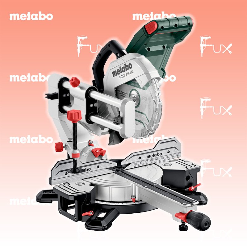 Das Ladenlokal bleibt vom 25. Dezember 2025 bis am 04. Januar 2026 geschlossen. Bestellungen und Lieferungen von Neugeräten werden trotz Ferienabwesenheit in gewohnter Fux-Manier entgegengenommen und ausgeliefert. Zu "Gehrungs - und Kappsägen" von Metabo Metabo KGSV 216 MC Gehrungs- und Kappsäge Bestell- und Artikelnummer: 615216000 Vielseitige Kappsäge mit maximaler Ausstattung: variable Drehzahl, kompakte Zugfunktion, beidseitige Sägekopfneigung und vieles mehr Precision Cut Line (PCL): exakte Schatten-Schnittlinie ohne Nachjustieren durch clever platzierte LED Kompakt konstruierte Zugfunktion ohne Platzbedarf hinter der Säge Maximale Flexibilität beim Sägen durch beidseitig drehbaren Tisch und beidseitig neigbaren Sägekopf Variable Drehzahl für erweitertes Einsatzspektrum, z.B. zum Sägen von Alu-Profilen und Kunststoffen Effektive Spanabsaugung über integrierten Spänefangtrichter Sanftanlauf für lange Lebensdauer von Motor und Getriebe Schnelle und präzise Einstellung gängiger Winkel über Rastpunkte Ausziehbare Tischverbreiterungen, auch abnehmbar zum Unterlegen extrem langer Werkstücke Schnellspannzwinge zur sicheren Fixierung des Werkstücks von oben oder von vorne Tiefenanschlag zur einfachen Herstellung von Nuten Technische Daten Auflagefläche 345 x 730 mm Max. Schnittbreite 90° / 45° 305 / 215 mm Max. Schnitttiefe 90° / 45° 70 / 40 mm Schnittkapazität 90° / 90° 305 x 70 mm Schnittkapazität 45° / 45° 215 x 40 mm Drehtellereinstellung links/rechts 50 / 50 ° Sägeblattneigung links/rechts 47 / 47 ° Sägeblatt 216 x 30 mm Nennaufnahmeleistung S1 100% 1200 W Nennaufnahmeleistung S6 20% 1500 W Leerlaufdrehzahl 2200 - 5300 /min Drehzahl bei Nennlast 4200 /min Schnittgeschwindigkeit 25 - 60 m/s Kabellänge 2 m Abmessungen 705 x 480 x 555 mm Gewicht 15.4 kg Standard-Ausrüstung Hartmetall-Sägeblatt (60 Zähne) Materialklemme Werkzeug für Sägeblattwechsel Kabelaufwicklung Spänefangsack 2 integrierte Tischverbreiterungen Ablänganschlag Zubehör Listenpreis CHF 339.00 Fuxpreis CHF 288.00 inkl. 8.1% MwSt, inkl vRG Frankolieferung Kein Grauimport! Produkt bestellen 1 Stück 2 Stück 3 Stück 4 Stück 5 Stück 6 Stück 7 Stück 8 Stück 9 Stück 10 Stück Alle Angaben ohne Gewähr und solange Vorrat reicht!Wiederverkäufer werden?Lehrlingsrabatt? Produkt als PDF AKTION 15%