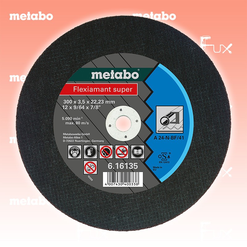 Das Ladenlokal bleibt vom 25. Dezember 2025 bis am 04. Januar 2026 geschlossen. Bestellungen und Lieferungen von Neugeräten werden trotz Ferienabwesenheit in gewohnter Fux-Manier entgegengenommen und ausgeliefert. Zu "Qualitätsklasse A 24 N Trennscheiben" von Metabo Metabo Trennscheibe Stahl 300 mm Bestell- und Artikelnummer: 616137000 Zur Verwendung in der gesamten Stahlverarbeitung, auch für Gusswerkstoffe Härte: mittel Hohe Schnittleistung bei hoher Standzeit Arbeitshöchstgeschwindigkeit 80 m/s Technische Daten Qualitätsklasse A 24 N Durchmesser x Dicke x Bohrung 300 x 3,5 x 25.4 mm Ausführung gerade Max. Drehzahl 5090 Standard-Ausrüstung Verkaufseinheit 10 Stk. Listenpreis CHF 180.00 Fuxpreis CHF 153.00 inkl. 8.1% MwSt, inkl vRG Frankolieferung Kein Grauimport! Produkt bestellen Verkaufseinheit 10 Stk. 1 Stück 2 Stück 3 Stück 4 Stück 5 Stück 6 Stück 7 Stück 8 Stück 9 Stück 10 Stück 11 Stück 12 Stück 13 Stück 14 Stück 15 Stück 16 Stück 17 Stück 18 Stück 19 Stück 20 Stück 21 Stück 22 Stück 23 Stück 24 Stück 25 Stück 26 Stück 27 Stück 28 Stück 29 Stück 30 Stück 31 Stück 32 Stück 33 Stück 34 Stück 35 Stück 36 Stück 37 Stück 38 Stück 39 Stück 40 Stück 41 Stück 42 Stück 43 Stück 44 Stück 45 Stück 46 Stück 47 Stück 48 Stück 49 Stück 50 Stück Alle Angaben ohne Gewähr und solange Vorrat reicht!Wiederverkäufer werden?Lehrlingsrabatt? Produkt als PDF AKTION 15%